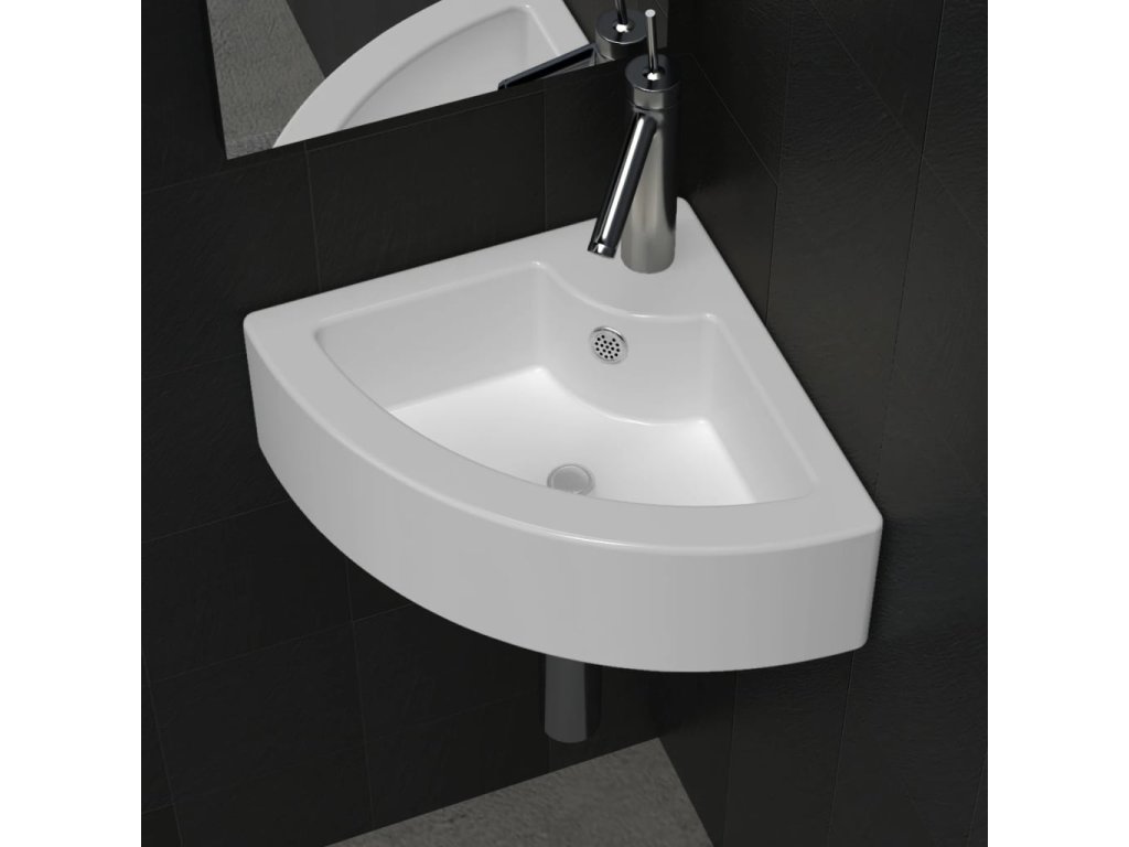 Toto rohové umyvadlo je vyrobeno z keramiky a představuje stylový a nadčasový doplněk do každé koupelny, umývárny, šatny nebo na toalety.