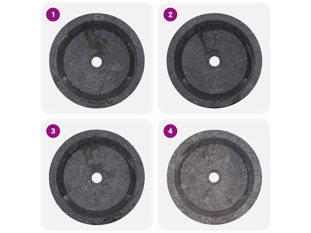 Poznámka: Mramor je přírodní produkt, a proto se v jeho zbarvení mohou vyskytovat drobné rozdíly. Zejména pro šedě zbarvený mramor platí, že skutečný produkt může být světlejší nebo tmavší než na fotografiích a v jeho zbarvení se též mohou vyskytnout kombinace různých barev. Příklad opravdového zbarvení produktu viz poslední obrázek.