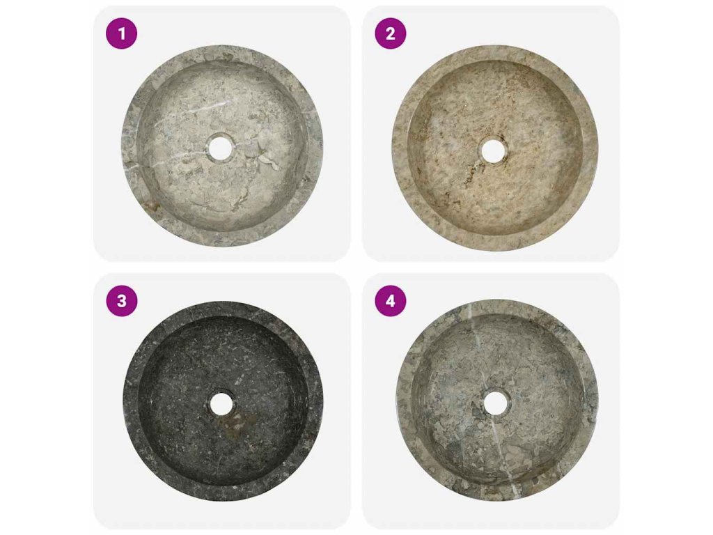 Poznámka: Mramor je přírodní produkt, a proto se v jeho zbarvení mohou vyskytovat drobné rozdíly. Zejména pro šedý mramor platí, že skutečný produkt může být světlejší nebo tmavší než na fotografiích a v jeho zbarvení se též mohou vyskytnout kombinace různých barev.