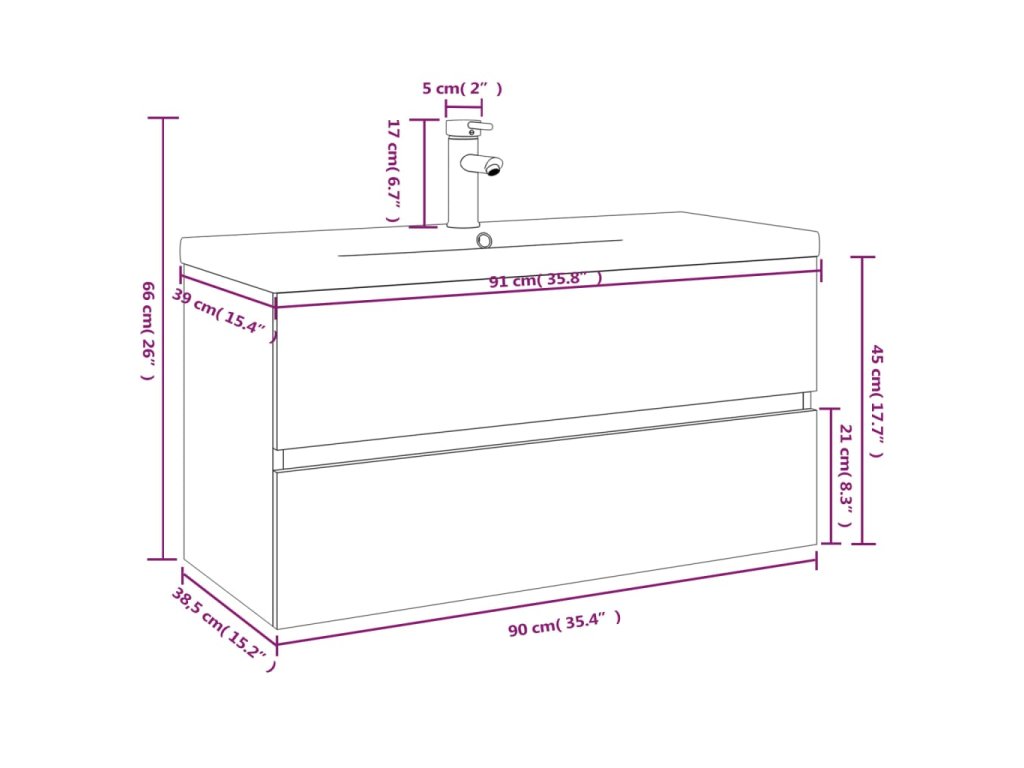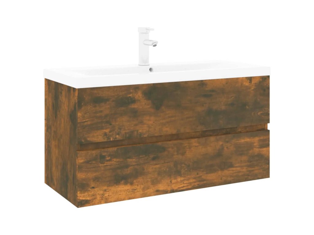 Umyvadlová skříňka s vestavěným umyvadlem kouřový dub kompozit 3152882