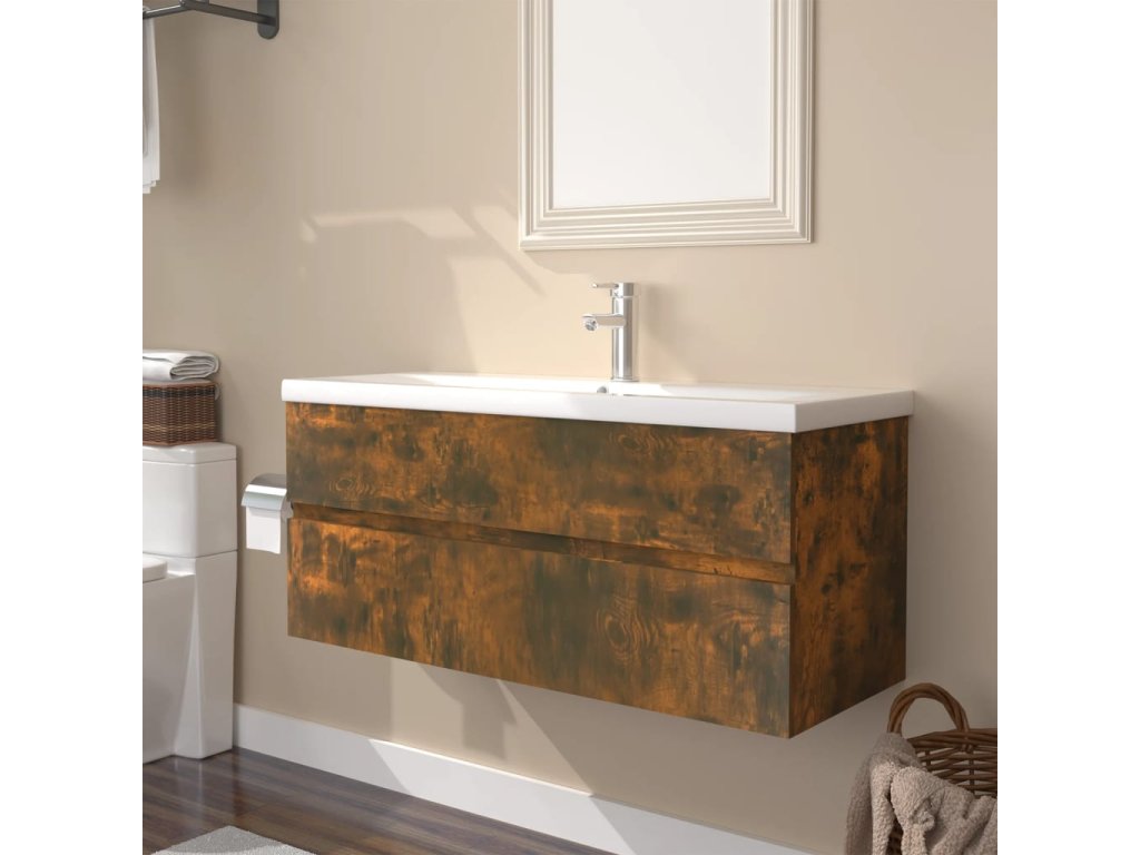 Umyvadlová skříňka s vestavěným umyvadlem kouřový dub kompozit 3152885