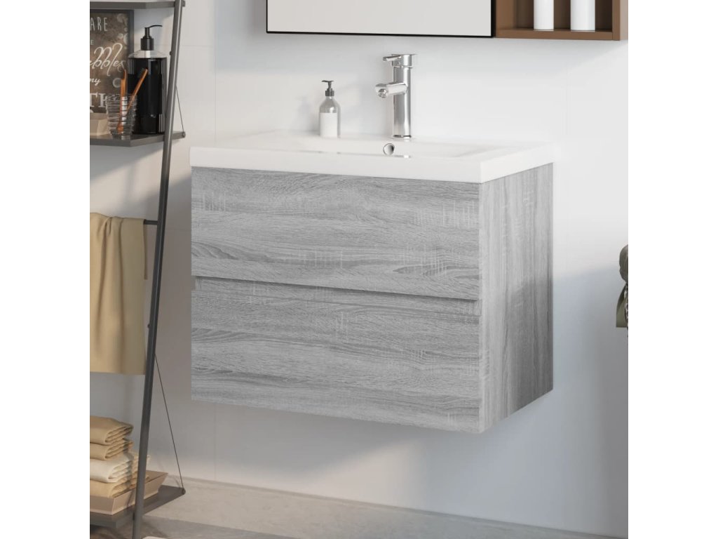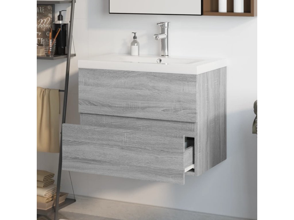 Umyvadlová skříňka s vestavěným umyvadlem šedá sonoma kompozit 3152871