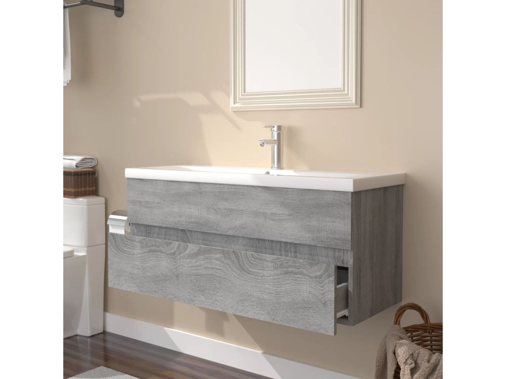 Umyvadlová skříňka s vestavěným umyvadlem šedá sonoma kompozit 3152886