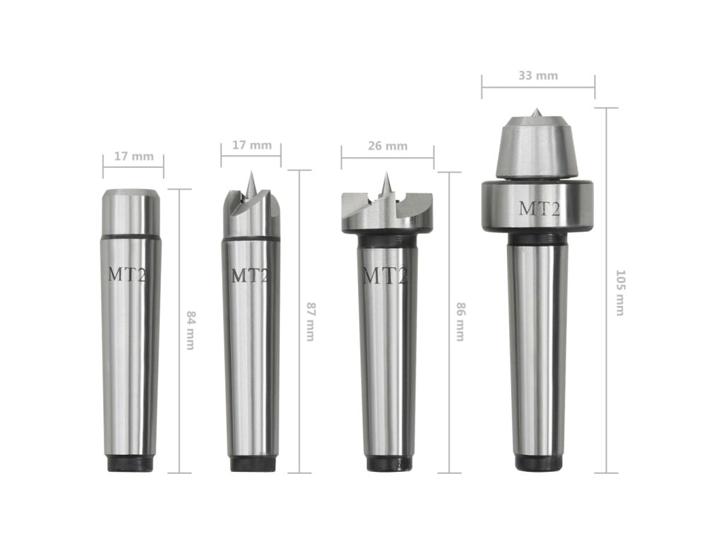 Tato sada unašečů MT2 je vše, co potřebujete k soustružení dřeva. Sada unášečů obsahuje pevné hroty pro vřeteník, upínací kužel a otočný hrot do koníku pro plynulé otáčení bez tření.