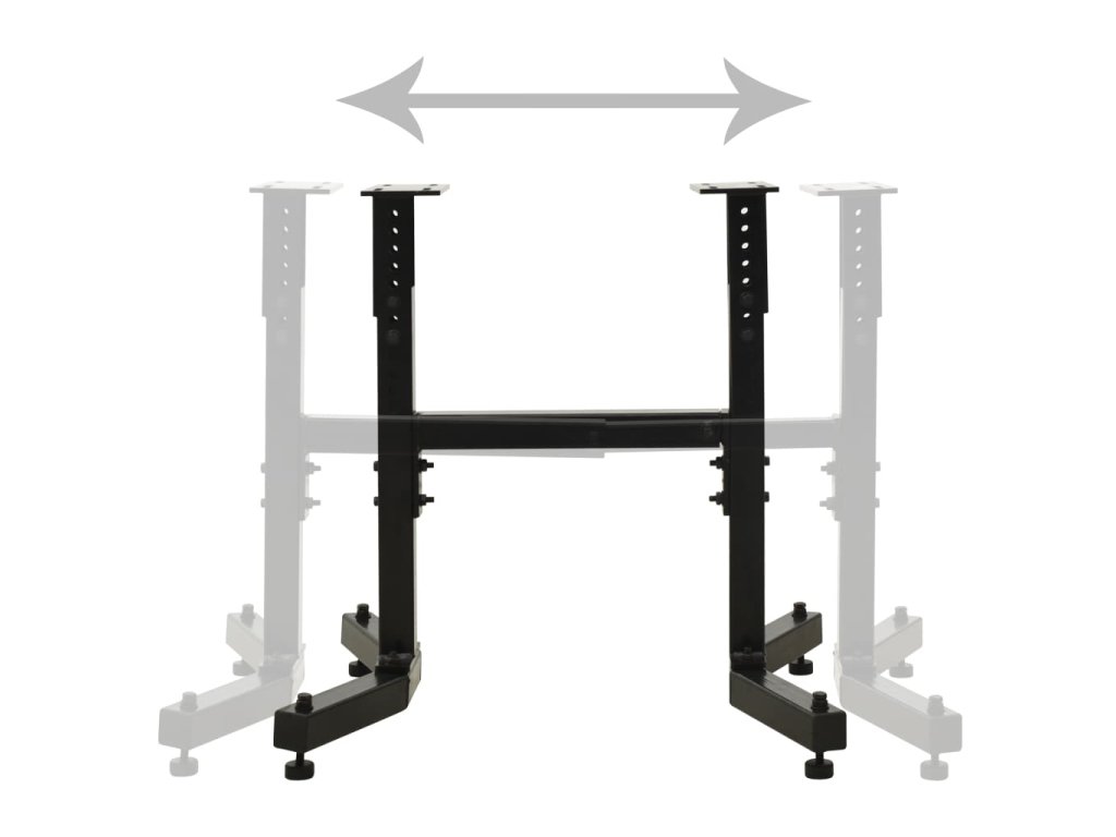 Stojan je vyroben ze silné oceli, je stabilní a odolný. Lze jej nastavit na výšku i na délku. Je možné také nastavit gumové nožičky pro zajištění maximální stability. Horní desky s předvrtanými montážními otvory pro větší pohodlí.