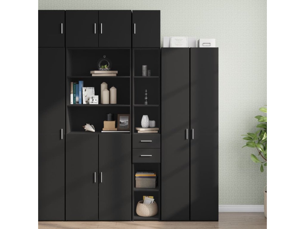Úzká úložná skříňka černá 30 x 42,5 x 225 cm kompozitní dřevo 3281267