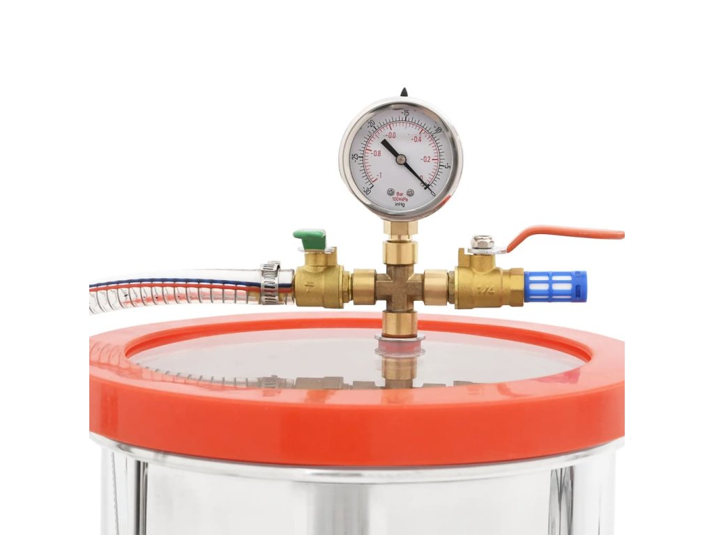 - Lepší přehled: Průhledné akrylové víko se při vakuových operacích neohýbá, což umožňuje lepší přehled o celém procesu odplyňování. Pro lepší kontrolu je vybavena i olejovým vakuoměrem a nárazuvzdorným vakuoměrem.