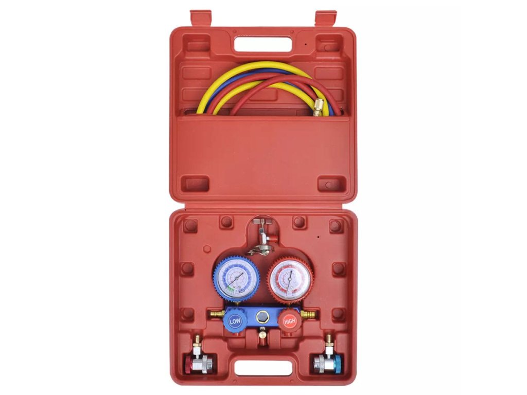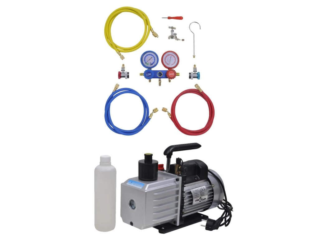 Čerpadlo vytváří podtlak, který umožňuje následné plnění klimatizačního systému chladivem. Vzhledem k jeho technickým vlastnostem lze čerpadlo využít k opravě chlazení, u zařízení pro tisk, zdravotního vybavení, k vakuovému balení, tepelnému tváření a dalším extrakčním činnostem. Čerpadlo má hliníkové pouzdro a praktické okénko pro okamžitou kontrolu hladiny oleje. Má také integrované madlo pro snadné přenášení. Přiložená 2cestná sada na měření je vhodná pro plnění a kontrolu klimatizačních systémů tím, že poskytuje údaje o tlaku v systému. Čerpadlo je vhodné pro použití ve všech klimatizacích automobilů, stejně jako v komerčních a domácích klimatizačních chladicích systémech. Barevně označená měřidla jsou rychlá, jasná a snadno čitelná a jsou uzavřena v ochranném plášti, aby se zabránilo poškození. K rychlému a snadnému zavěšení měřidel můžete použít integrovaný ocelový hák. Sada měřidel má odolnou konstrukci a dodává se v kufříku z foukaného plastu pro jednodušší přepravu a uskladnění.