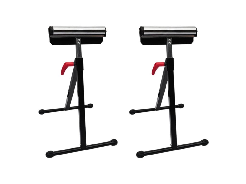 Tento set 2 válcových podpěr k pokosovým a stolním pilám nebo k hoblovkám je vhodný při práci s dlouhými obrobky.Válcové podpěry jsou vyrobeny z masivní oceli s nosností až 60 kg. Gumové nožičky podpěr jsou stabilní i na kluzkém povrchu. Pracovní výška je jednoduše nastavitelná jednou rukou.