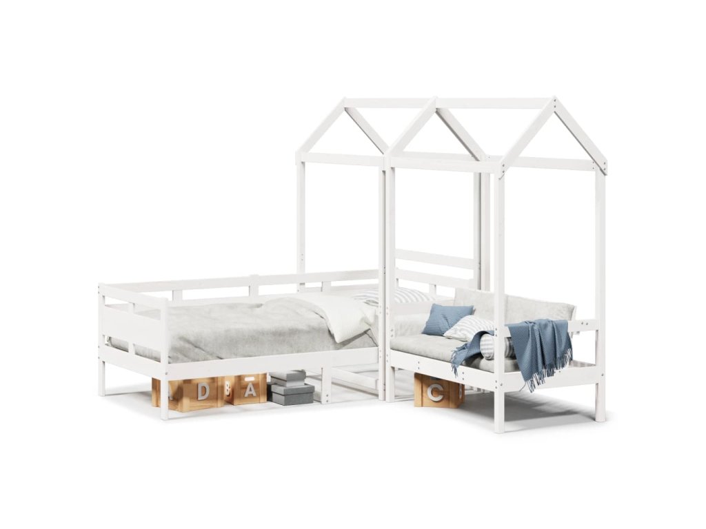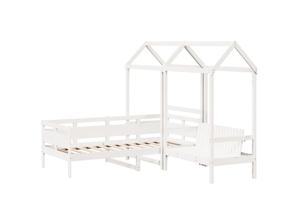 Válenda a lavice se střechou bílá 80 x 200 cm masivní borovice 3282297