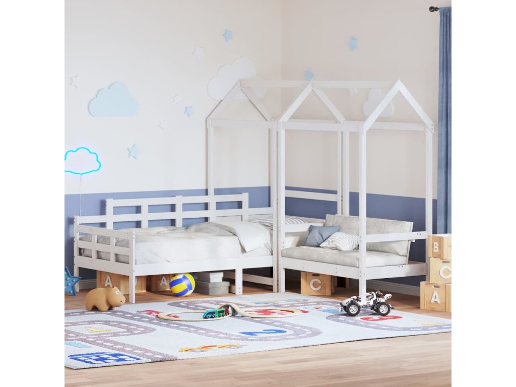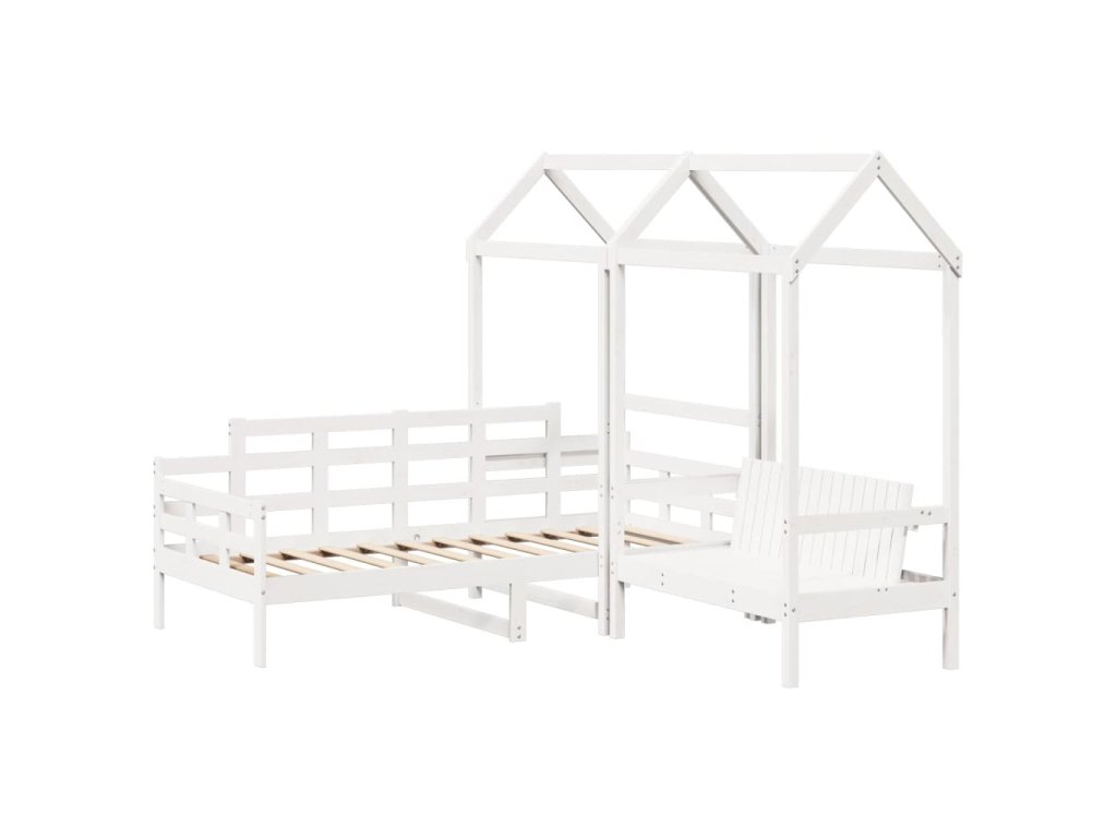 Válenda a lavice se střechou bílá 80 x 200 cm masivní borovice 3282309