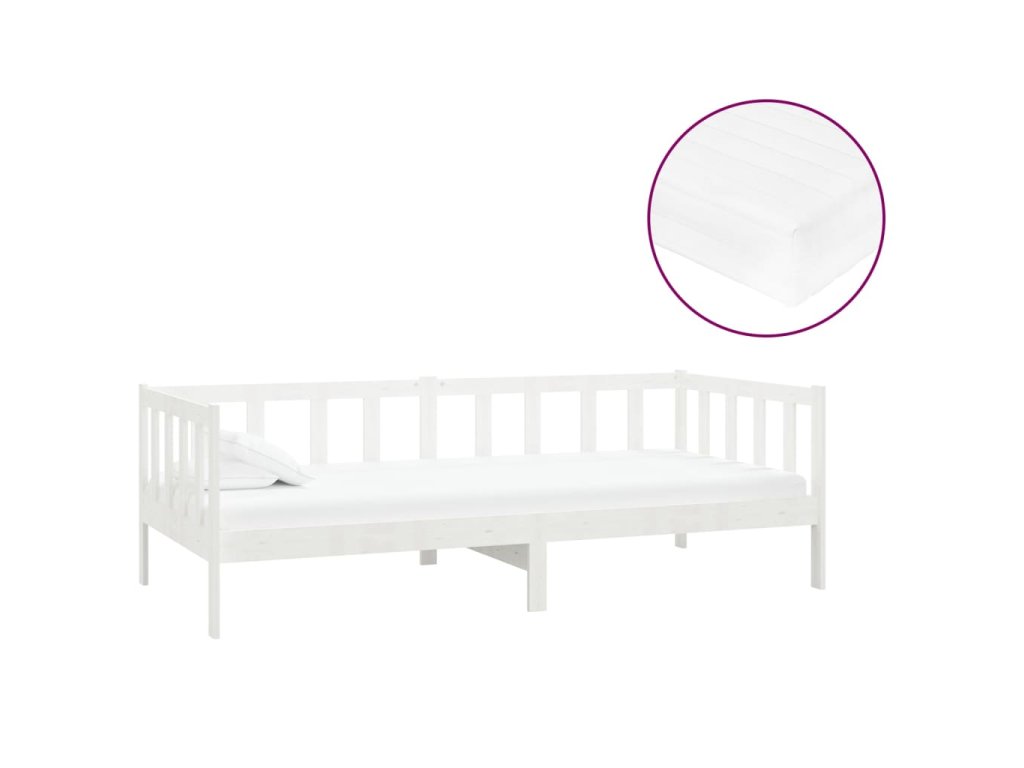 Válenda s matrací 90 x 200 cm bílá masivní borové dřevo 3083605