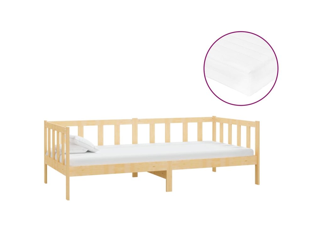 Válenda s matrací 90 x 200 cm masivní borové dřevo 3083604