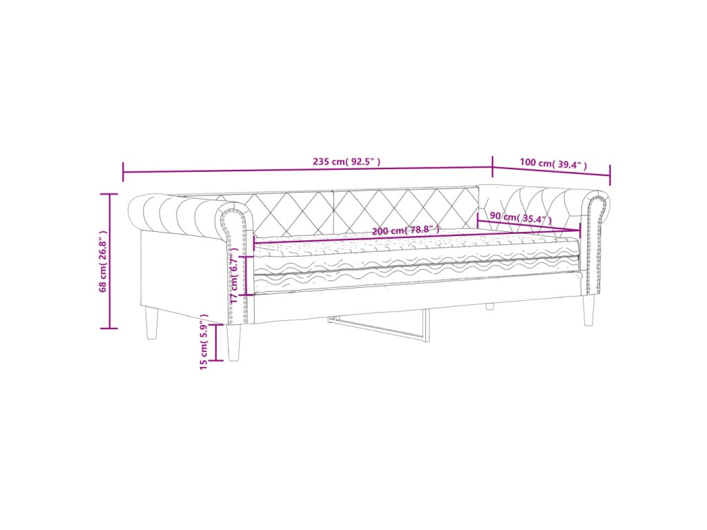 - Rozměry: 235 x 100 x 68 cm (D x Š x V)