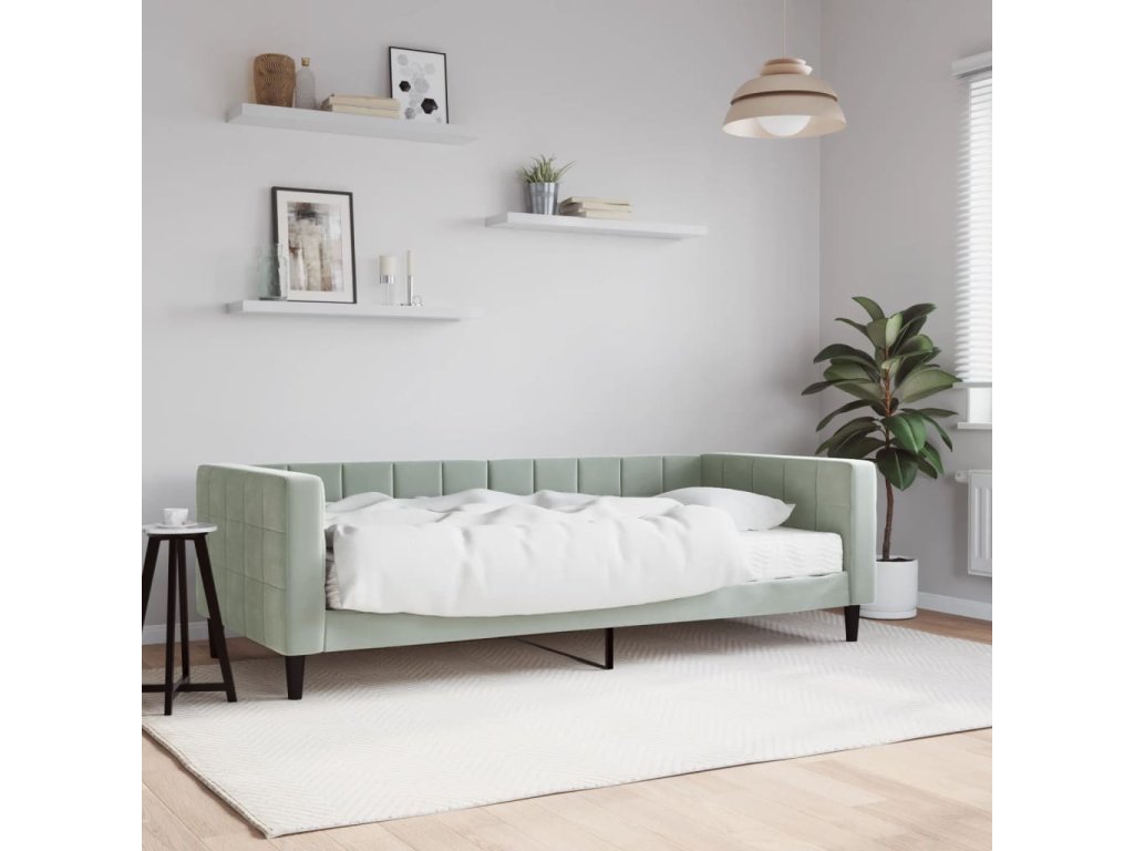 Válenda s matrací světle šedá 90 x 200 cm samet 3196667