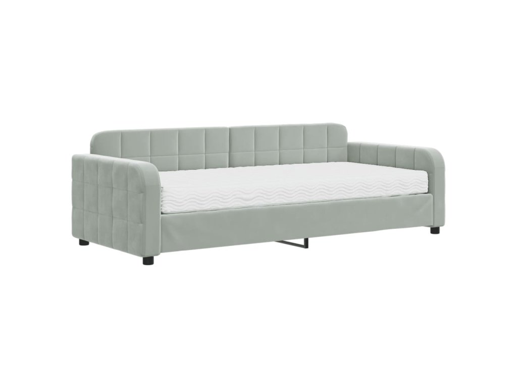 Válenda s matrací světle šedá 90 x 200 cm samet 3196905