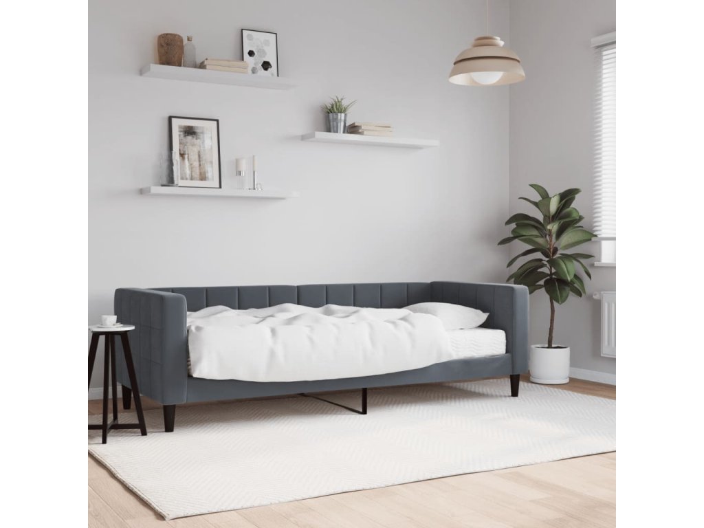 Válenda s matrací tmavě šedá 80 x 200 cm samet 3196661