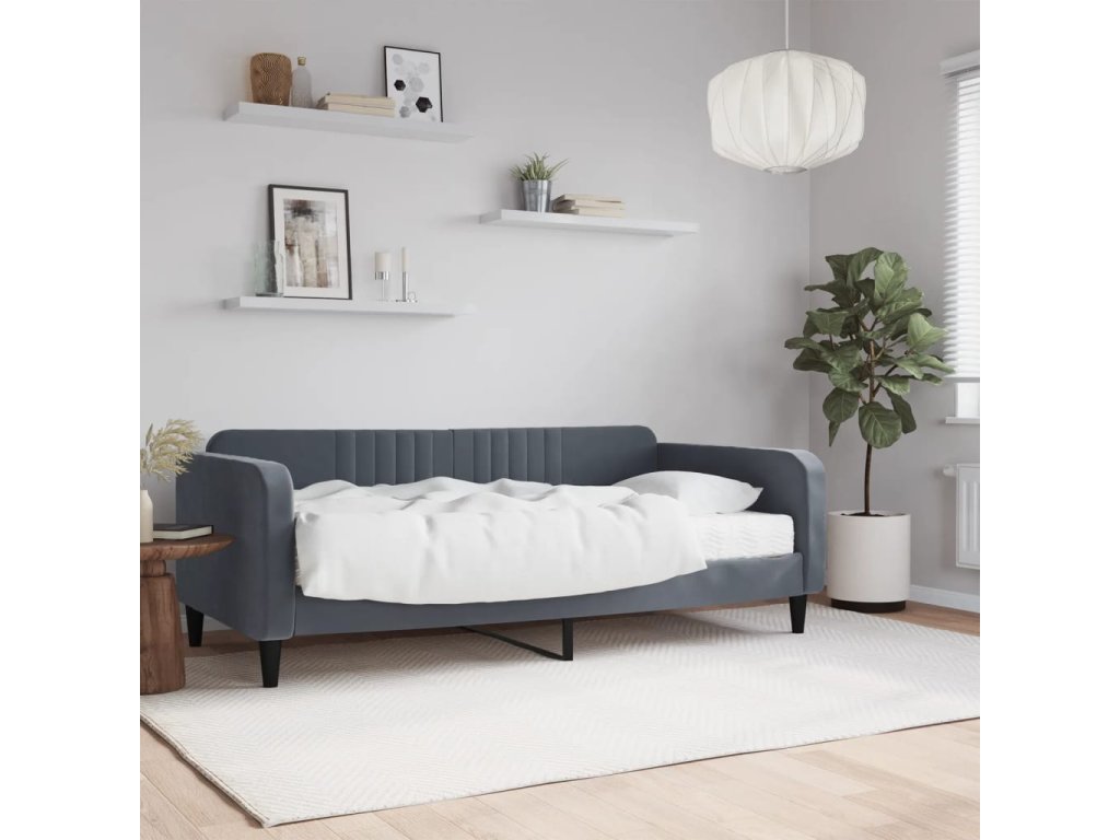 Válenda s matrací tmavě šedá 90 x 190 cm samet 3197053