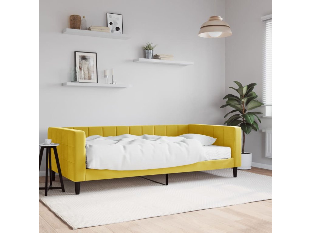 Válenda s matrací žlutá 100 x 200 cm samet 3196679