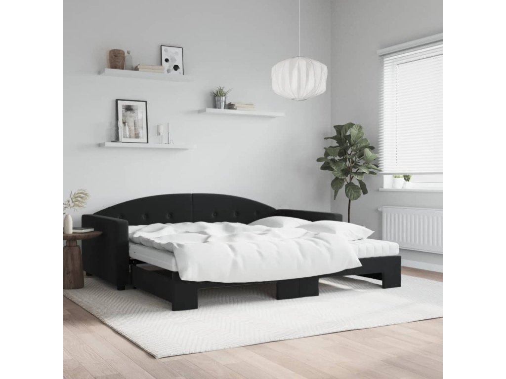 Válenda s přistýlkou a matracemi černá 100 x 200 cm samet 3197336