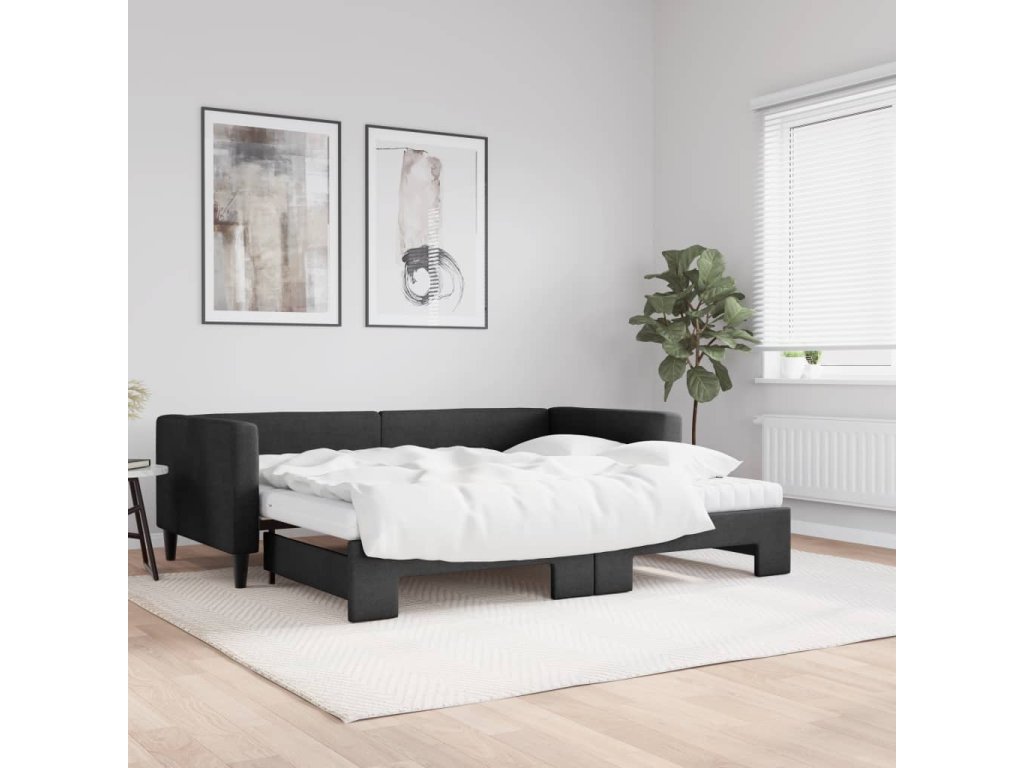 Válenda s přistýlkou a matracemi černá 90 x 190 cm textil 3196608