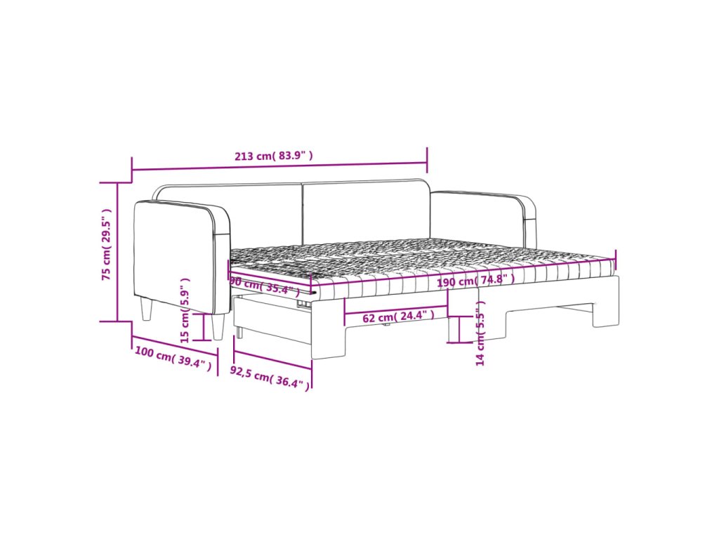 - Rozměry (nevysunuté): 213 x 100 x 75 cm (D x Š x V)