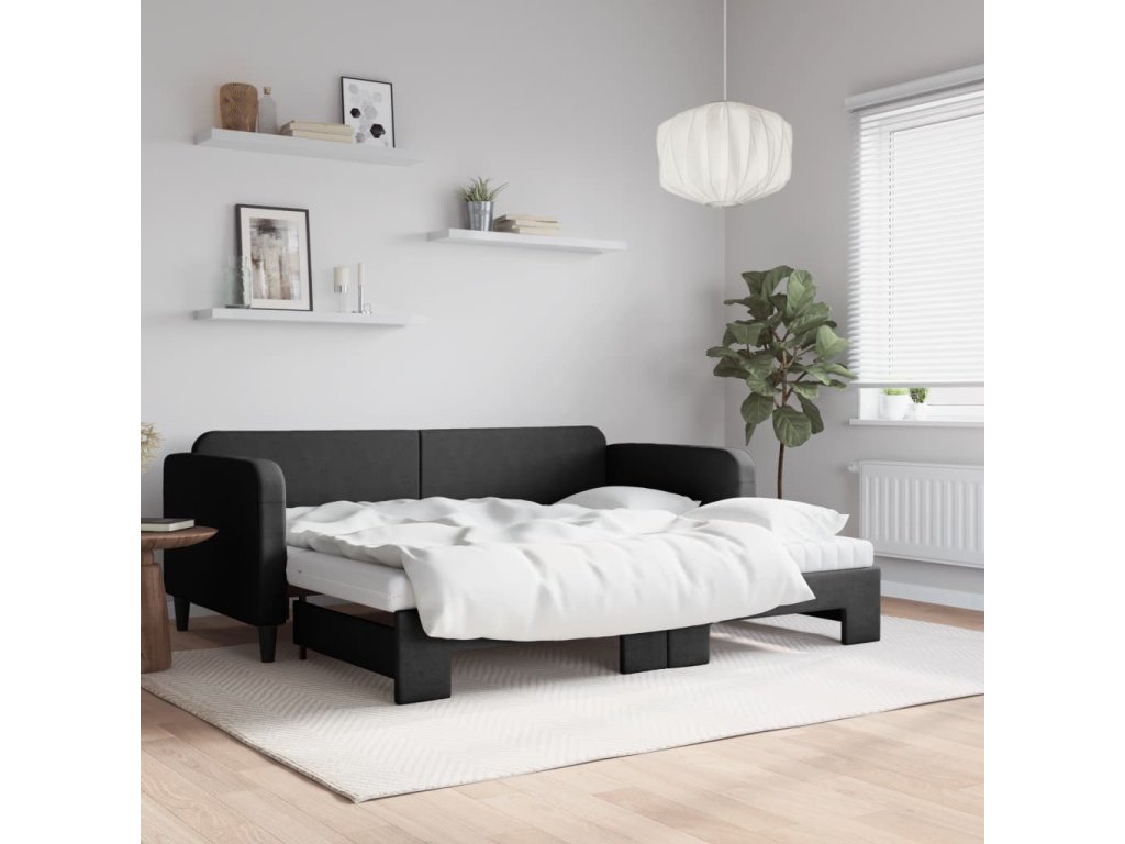 Válenda s přistýlkou a matracemi černá 90 x 190 cm textil 3196846