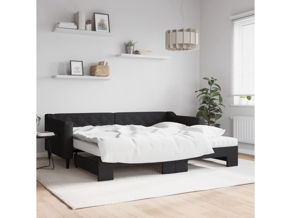 Válenda s přistýlkou a matracemi černá 90 x 200 cm textil 3197446
