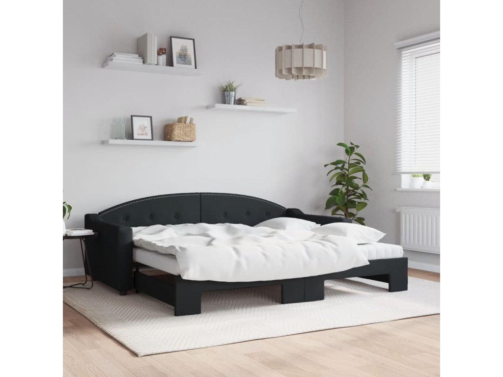 Válenda s přistýlkou a matracemi černá 90 x 200 cm textil 3197550