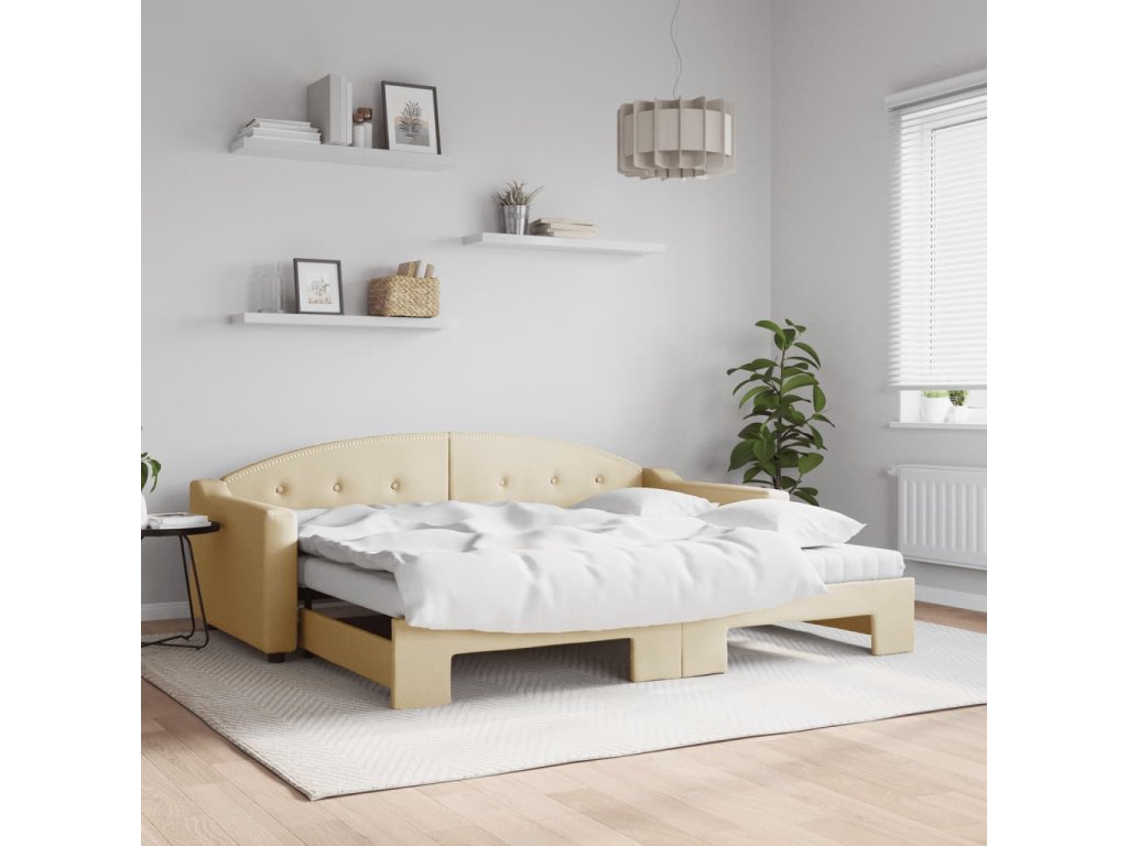 Válenda s přistýlkou a matracemi krémová 90 x 200 cm textil 3197552