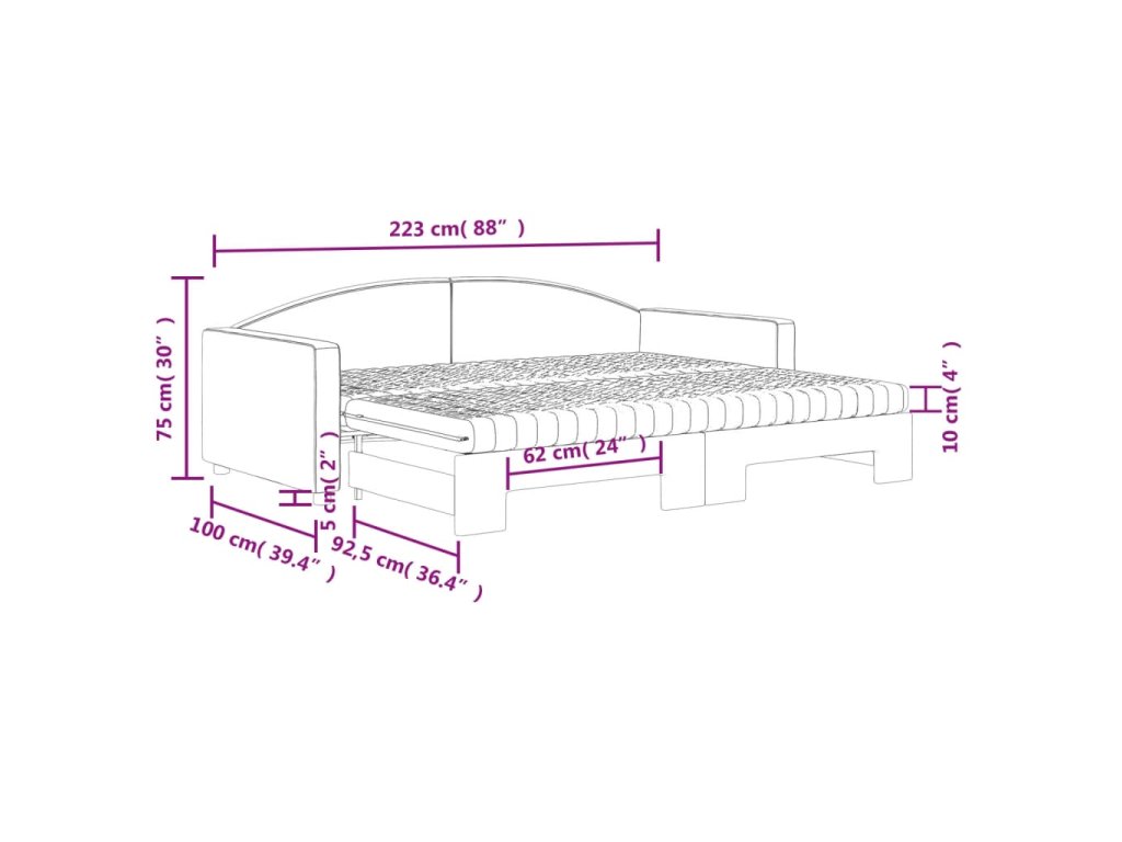 - Rozměry (nevysunuté): 223 x 100 x 75 cm (Š x H x V)