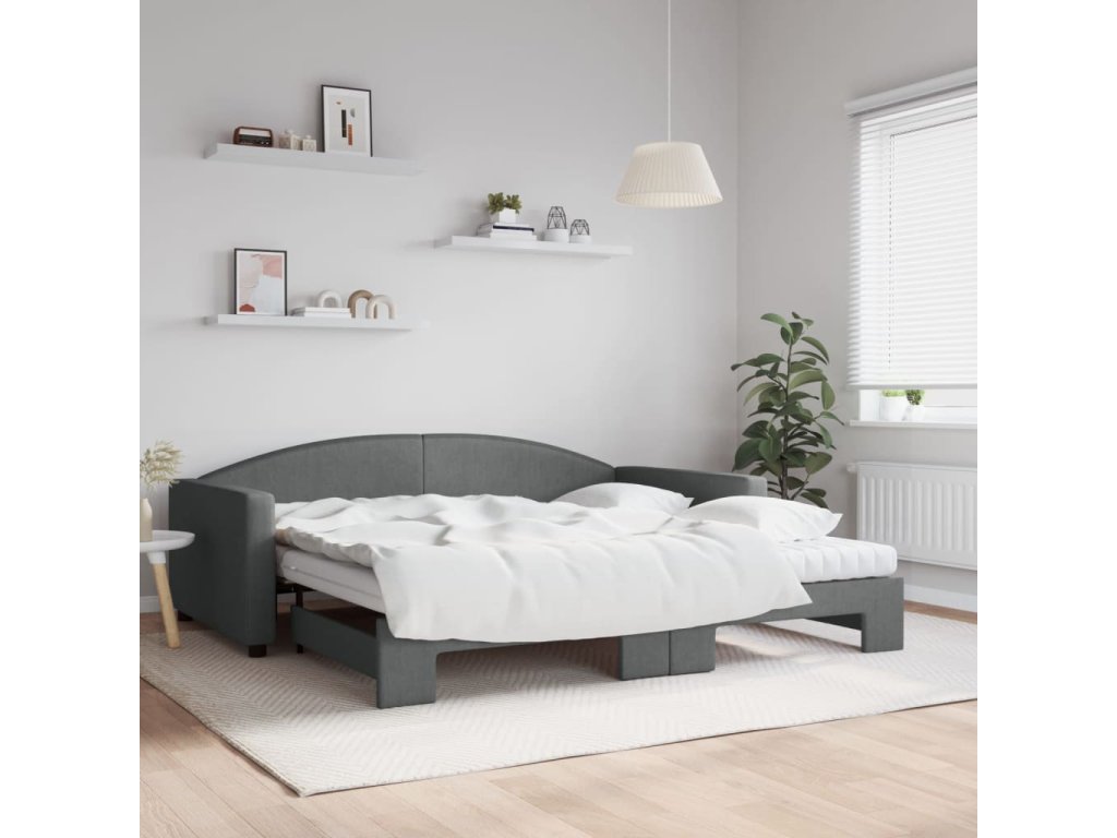 Válenda s přistýlkou a matracemi tmavě šedá 100 x 200 cm textil 3197212