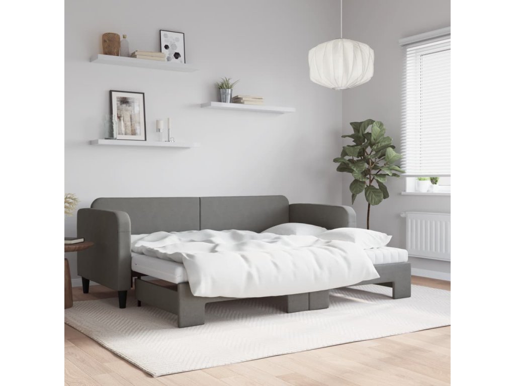 Válenda s přistýlkou a matracemi tmavě šedá 80 x 200 cm textil 3196830
