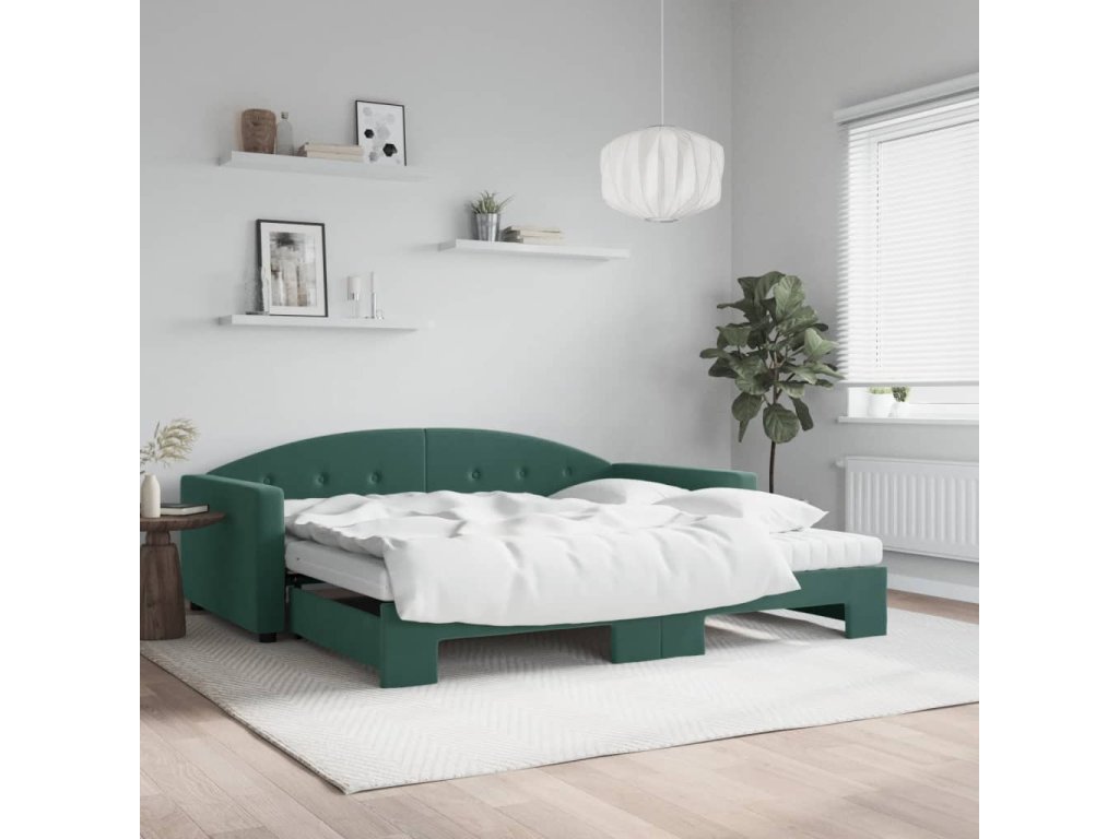 Válenda s přistýlkou a matracemi tmavě zelená 100x200 cm samet 3197334