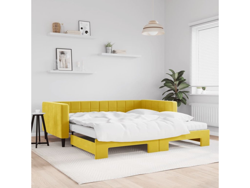 Válenda s přistýlkou a matracemi žlutá 100 x 200 cm samet 3196727