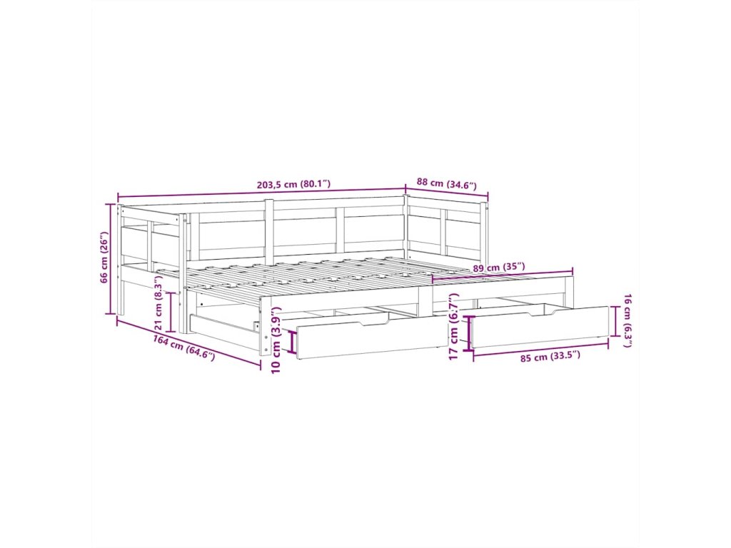 - Rozměry (nevysunuté): 203,5 x 88 x 66 cm (D x Š x V)
