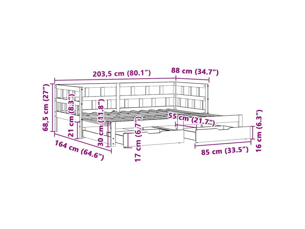 Válenda s přistýlkou a zásuvkami bez matrace bílá 80x200 cm 3302210