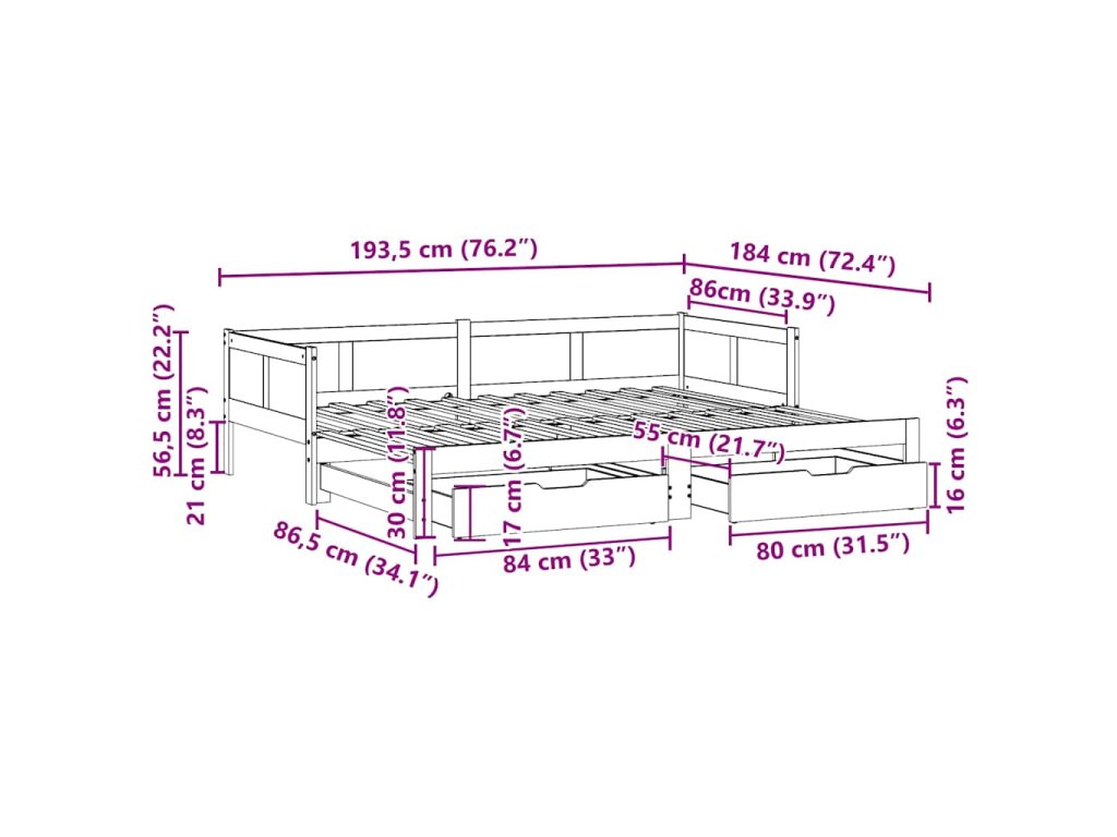 Válenda s přistýlkou a zásuvkami bez matrace bílá 90x190 cm 3302218