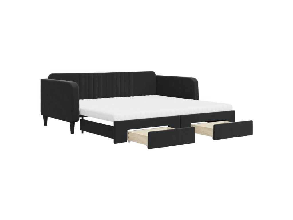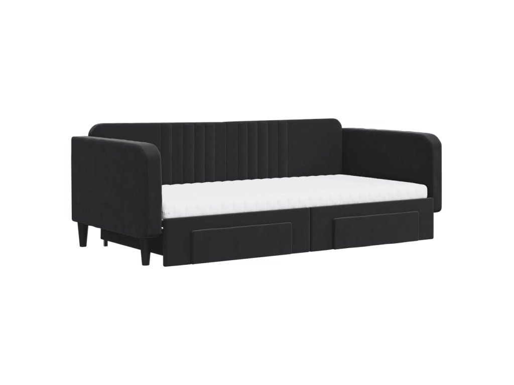 Válenda s přistýlkou a zásuvkami černá 100 x 200 cm samet 3197146