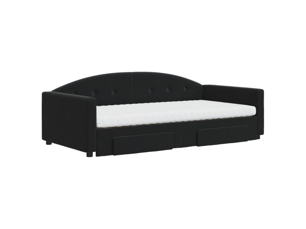 Válenda s přistýlkou a zásuvkami černá 100 x 200 cm samet 3197384