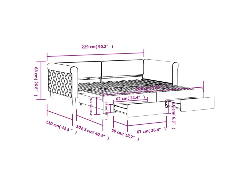 - Dostatek úložného prostoru: Tato postel pro hosty má dvě zásuvky s kolečky, které poskytují spoustu místa pro uschování oblečení, ponožek, hraček, polštářů atd.