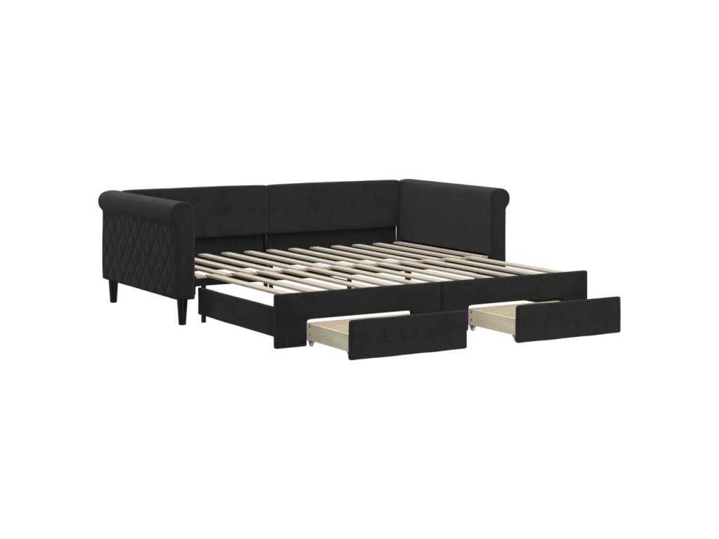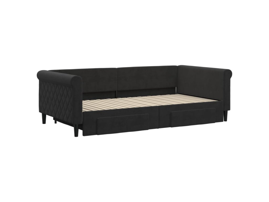 Válenda s přistýlkou a zásuvkami černá 100 x 200 cm samet 3197830