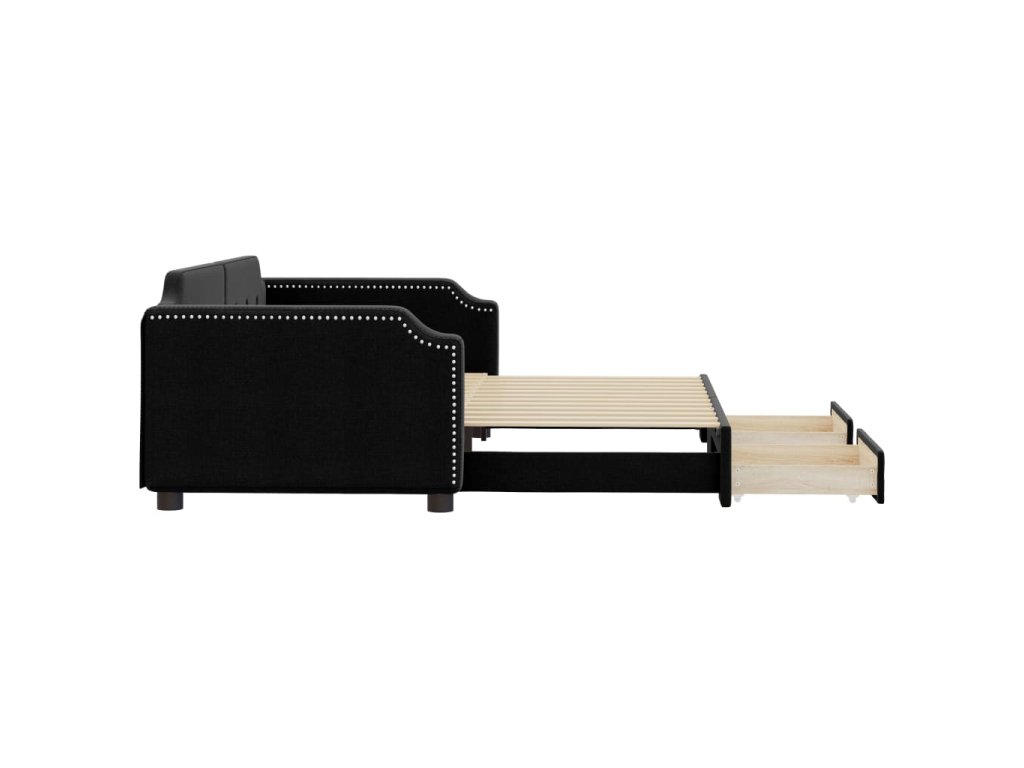 Válenda s přistýlkou a zásuvkami černá 100 x 200 cm textil 3197677