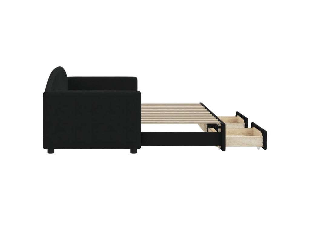 Válenda s přistýlkou a zásuvkami černá 80 x 200 cm textil 3197221