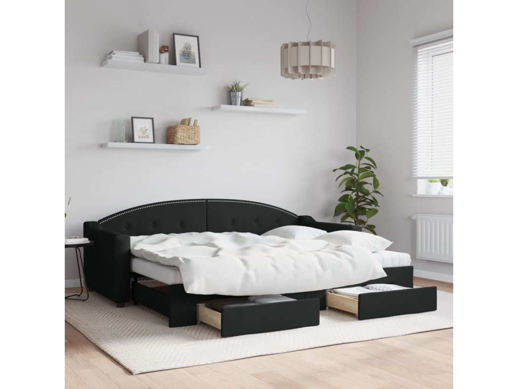 Válenda s přistýlkou a zásuvkami černá 80 x 200 cm textil 3197563