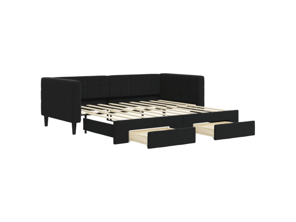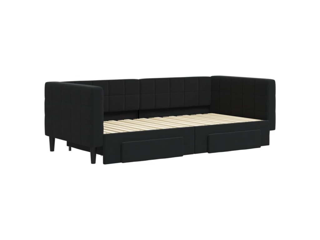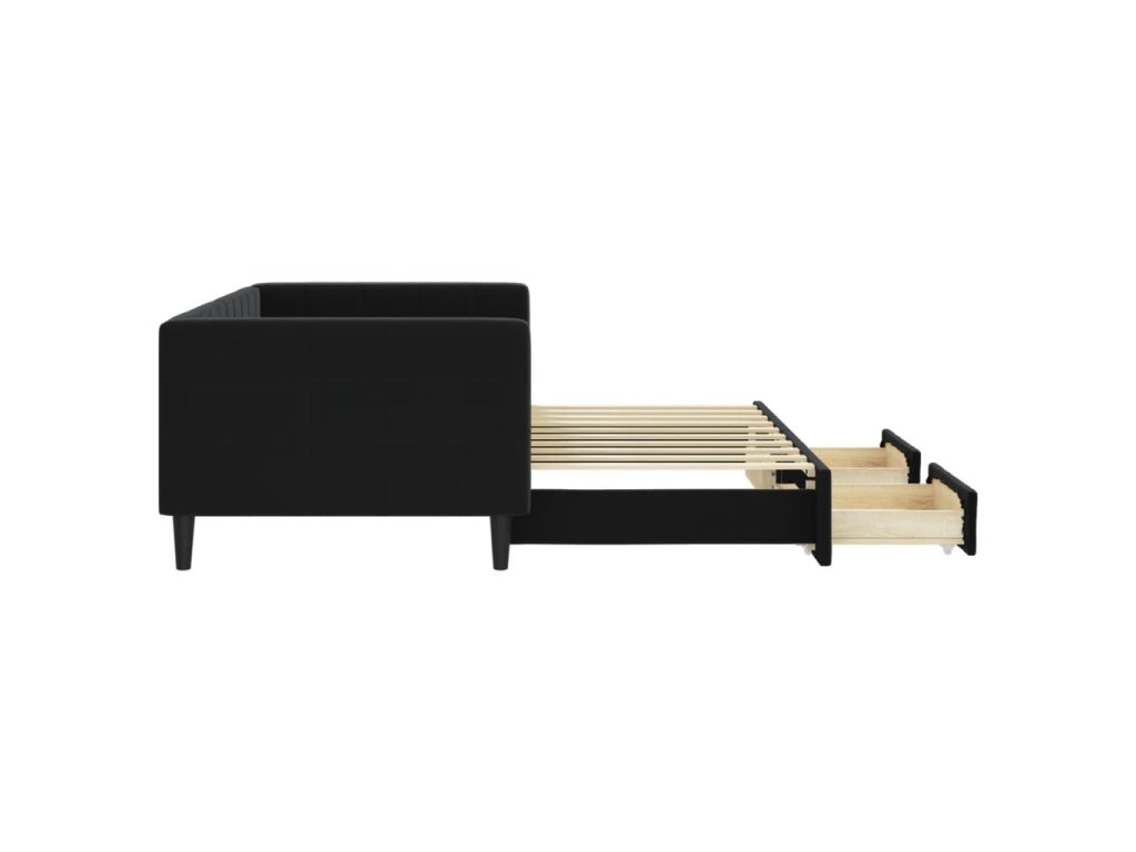 Válenda s přistýlkou a zásuvkami černá 90 x 190 cm samet 3196754