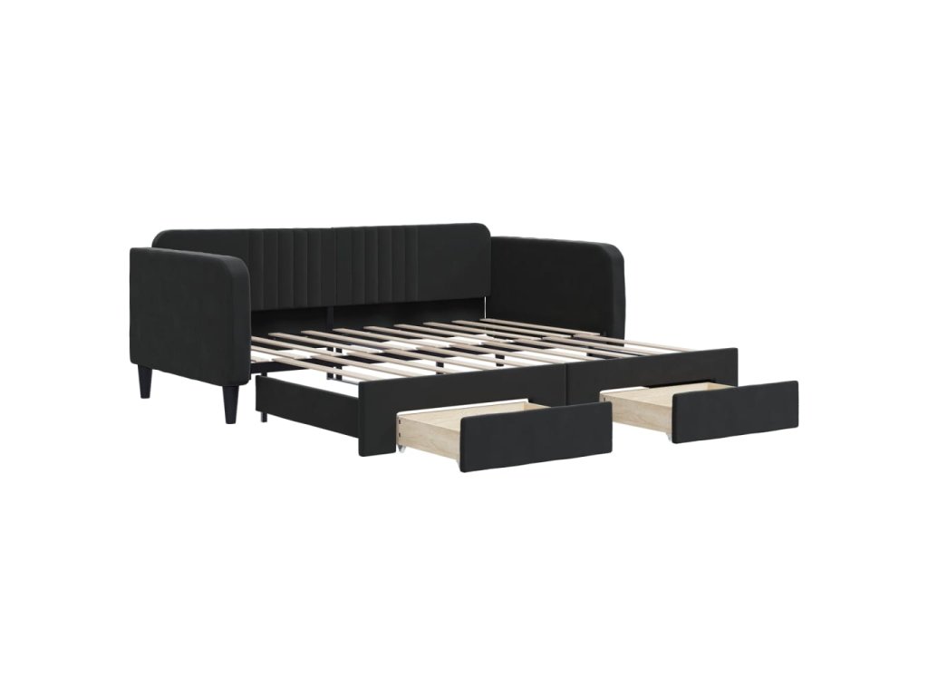 Válenda s přistýlkou a zásuvkami černá 90 x 190 cm samet 3197126