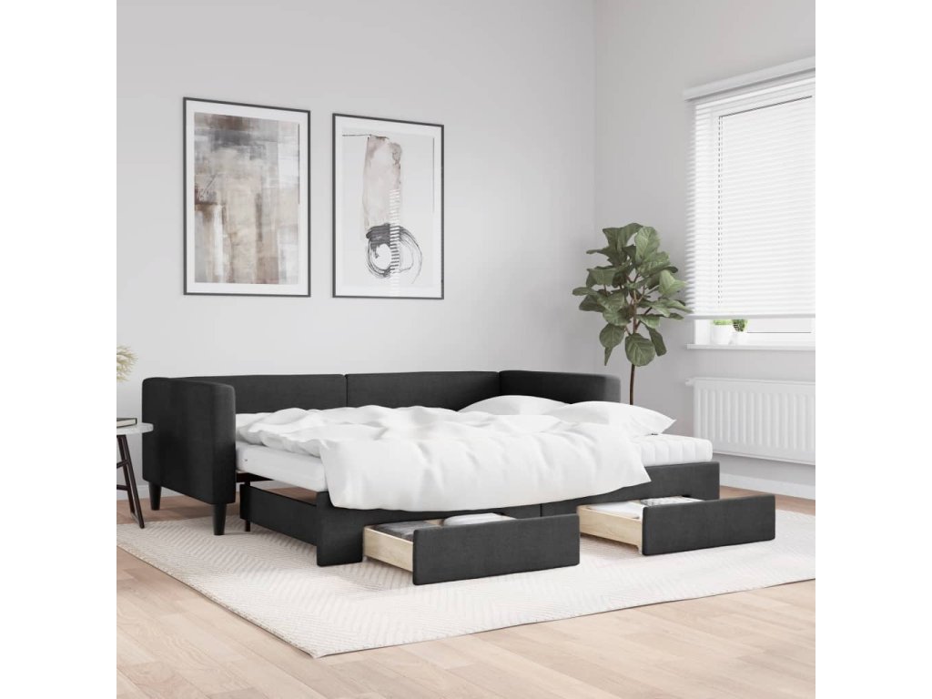 Válenda s přistýlkou a zásuvkami černá 90 x 190 cm textil 3196644