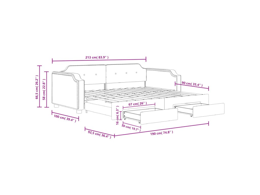 - Rozměry (nevysunuté): 213 x 100 x 66,5 cm (D x Š x V)