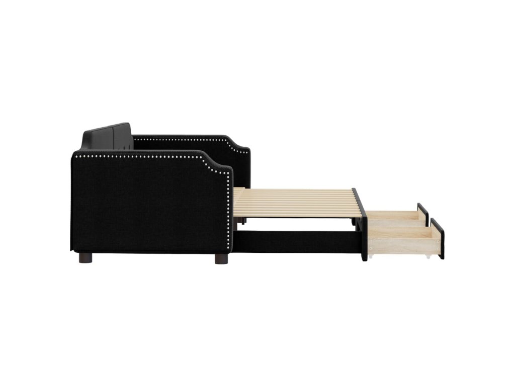 Válenda s přistýlkou a zásuvkami černá 90 x 190 cm textil 3197682